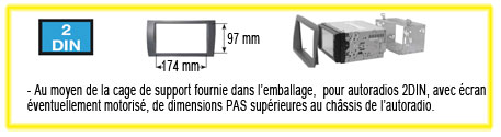 Code article: 3/532 Classe de produit: Supports autoradio Description: Kit d'installation Double DIN frontal dimensions 2DIN MAX 98mm x174 mm Colour Noir Emb. 1 set TOYOTA COROLLA '03>'08 ![]() € 38.99